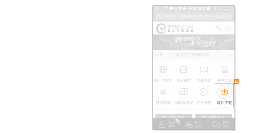 打开鑫汇宝网站,点击”软件下载“,