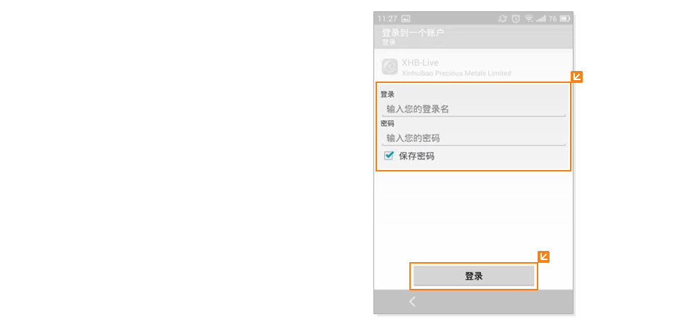 XHB-Live(登入真实账户)后输入