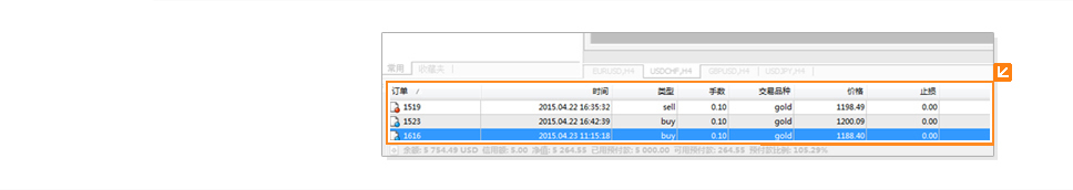 在"交易"窗口中可以知道订单