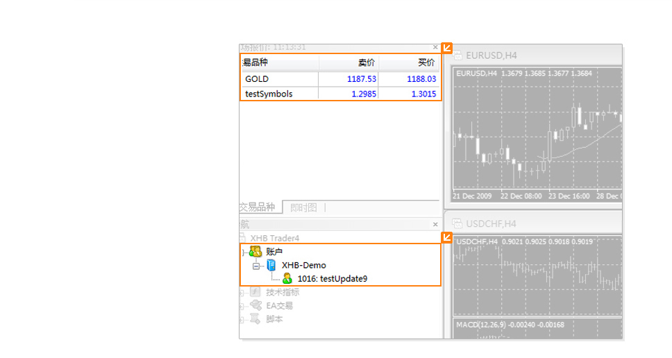 交易品种,价格走势,账户信息。